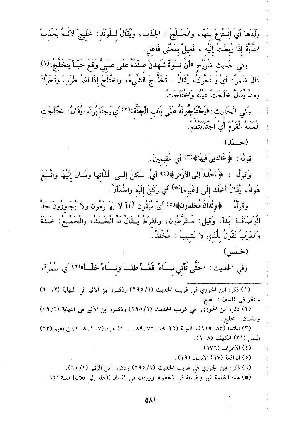 ولدها أي انتزع منها، والخلج: الجذب، ويقال للوتد: خليج لأنه يجذب الدابة إذا ربطت إليه، فعيل بمعني فاعل.