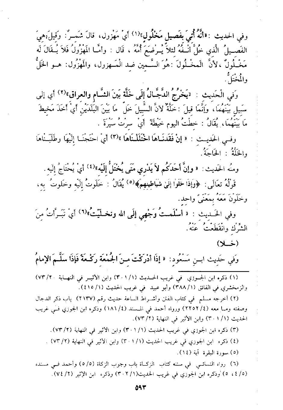 وفي الحديث: (يخرج الدجال إلى خلة بين الشام والعراق) أي إلى سبيل بينهما، وإنما قيل: خلة لأن السبيل خل ما بين البلدين أي أخذ مخيط ما بينهما، يقال: خطت اليوم خيطة أي سرت سيرة.