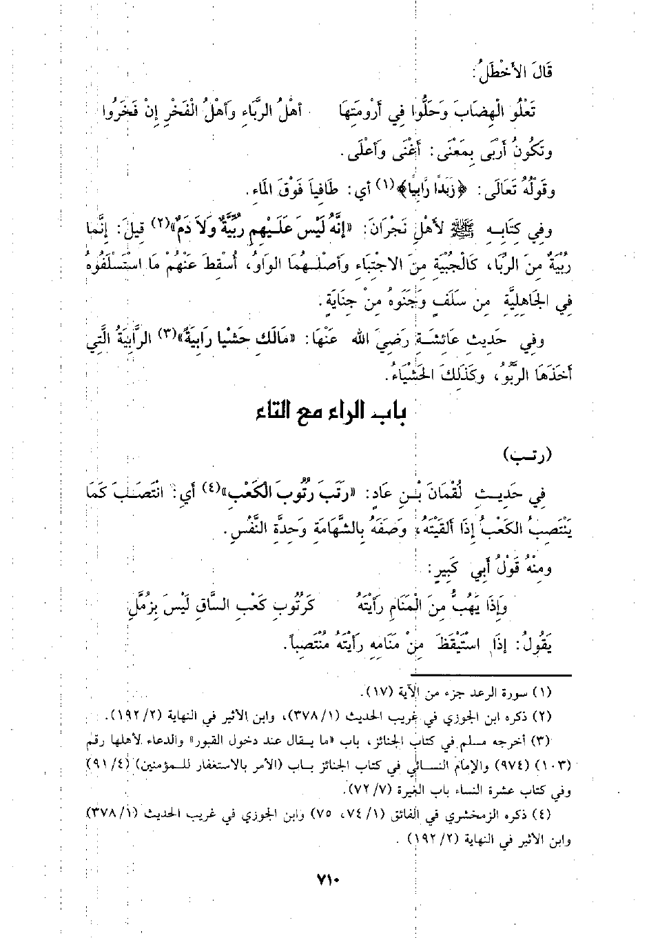 في حديث لقمان بن عاد: (رتب رتوب الكعب) أي: انتصب كما ينتصب الكعب إذا ألقيته، وصفه بالشهامة وحدة النفس.