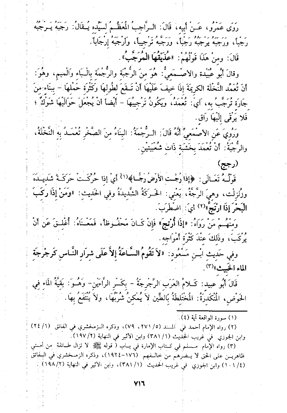 وقال أبو عبيدة والأصمعي: هو من الرجبة والرجمة بالباء والميم، وهو أن تعمد النخلة الكريمة إذا خيف عليها أن تقع لطولها وكثرة حملها- ببناء من جارة ترجب به، أي: تعمد، ويكون ترجيبها- أيضا أن يجعل حواليها شوك، فلا يرقى إليها راق.