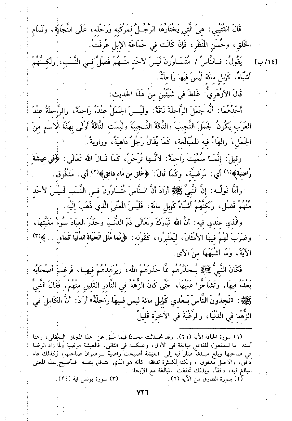 وأما قوله: إن النبي - صلى الله عليه وسلم - أراد أن الناس متساوون في النسب ليس لأحد منهم فضل، ولكنهم أشباه كإبل مائة، فليس المعنى الذي ذهب إليه.