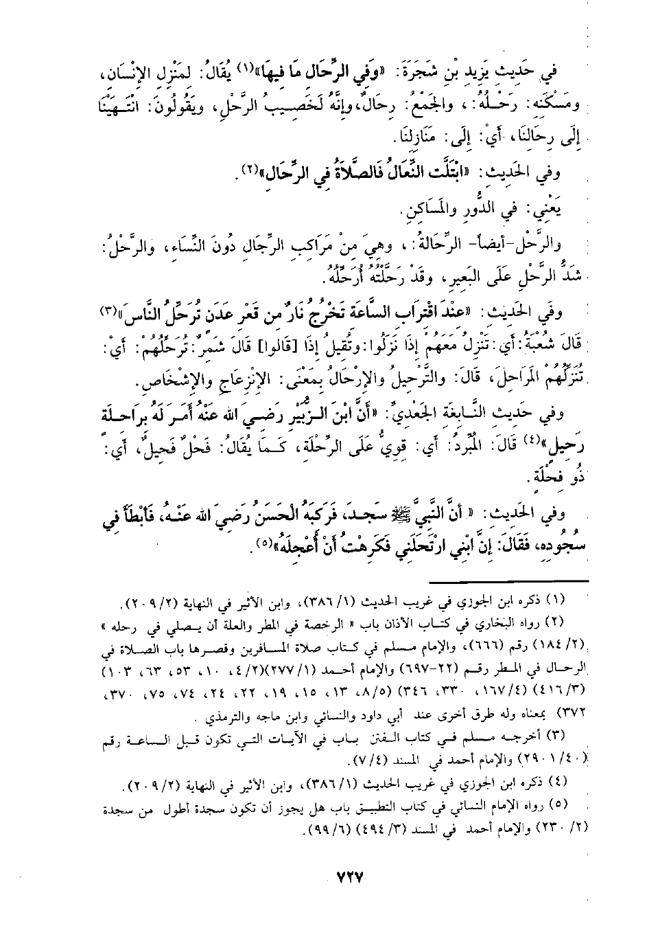 وفي حديث يزيد بن شجرة: (وفي الرحال ما فيها) يقال: لمنزل الإنسان، ومسكنه: رحله: ، والجمع: رحال، وإنه لخصيب الرحل، ويقولون: انتهينا إلى رحالنا، أي: إلى: منازلنا.