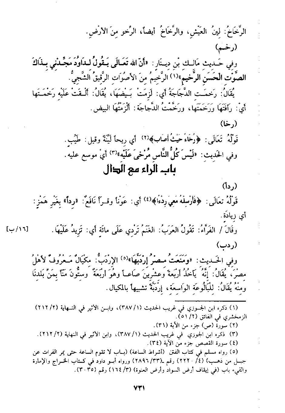 وفي الحديث: (ومنعت مصر إردبها) الإردب: مكيال معروف لأهل مصر، يقال: إنه يأخذ أربعة وعشرين صاعا وهو أربعة وستون منا بمن بلدنا ومنه يقال: للبالوعة الواسعة، إردبة تشبيها بالمكيال.