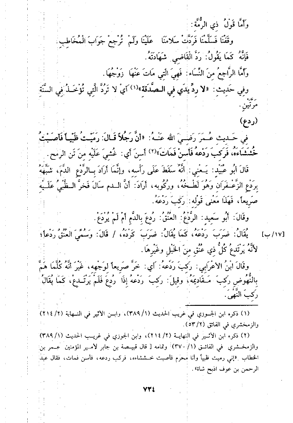وقال: أبو سعيد: الردع: العنق: ردع بالدم أم لم يردع.