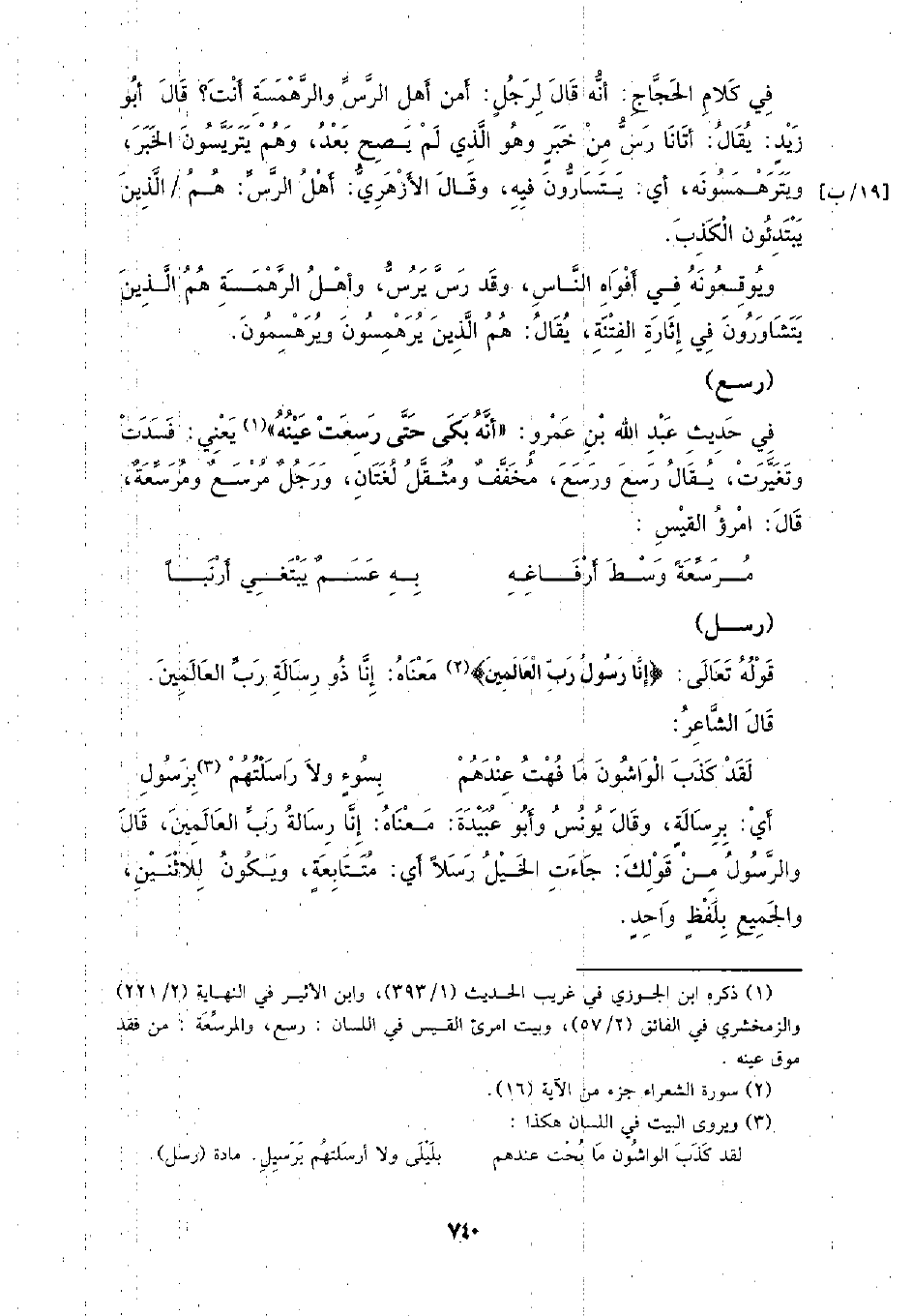 في كلام الحجاج: أنه قال لرجل: أمن أهل الرس والرهمسة أنت؟ قال أبو زيد: يقال: أتانا رس من خبر وهو الذي لم يصح بعد، وهم يتريسون الخبر، ويترهمسونه، أي: يتسارون فيه، وقال الأزهري: أهل الرس: هم الذين يبتدئون الكذب.