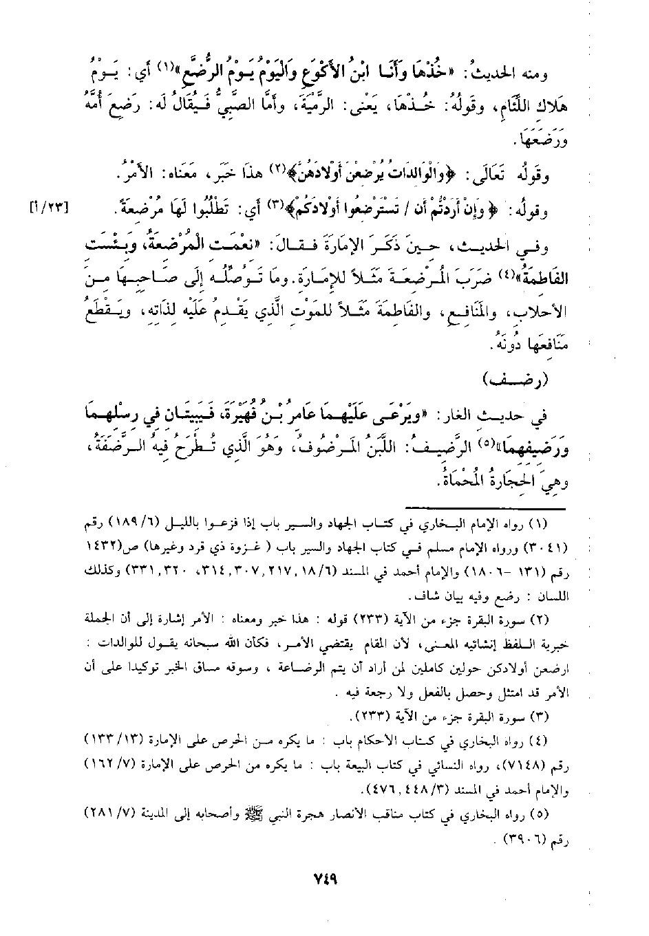 ومنه الحديث: (خذها وأنا ابن الأكوع واليوم يوم الرضع) أي: يوم هلاك اللئام، وقوله: خذها، يعني: الرمية، وأما الصبي فيقال له: رضع أمه ورضعها.