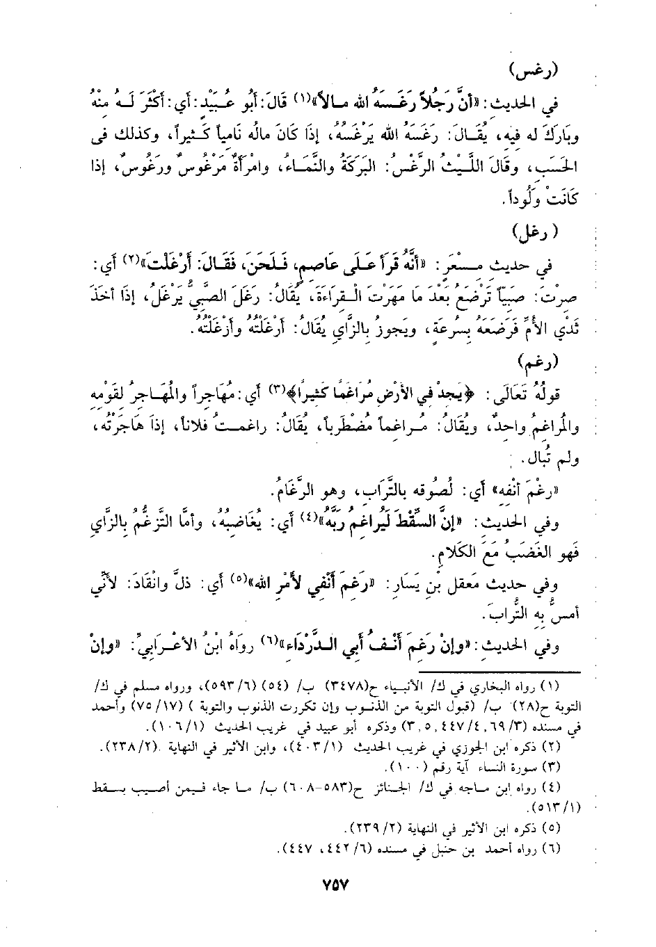 وفي الحديث: (إن السقط ليراغم ربه) أي: يغاضبه، وأما التزغم بالزاي فهو الغضب مع الكلام.