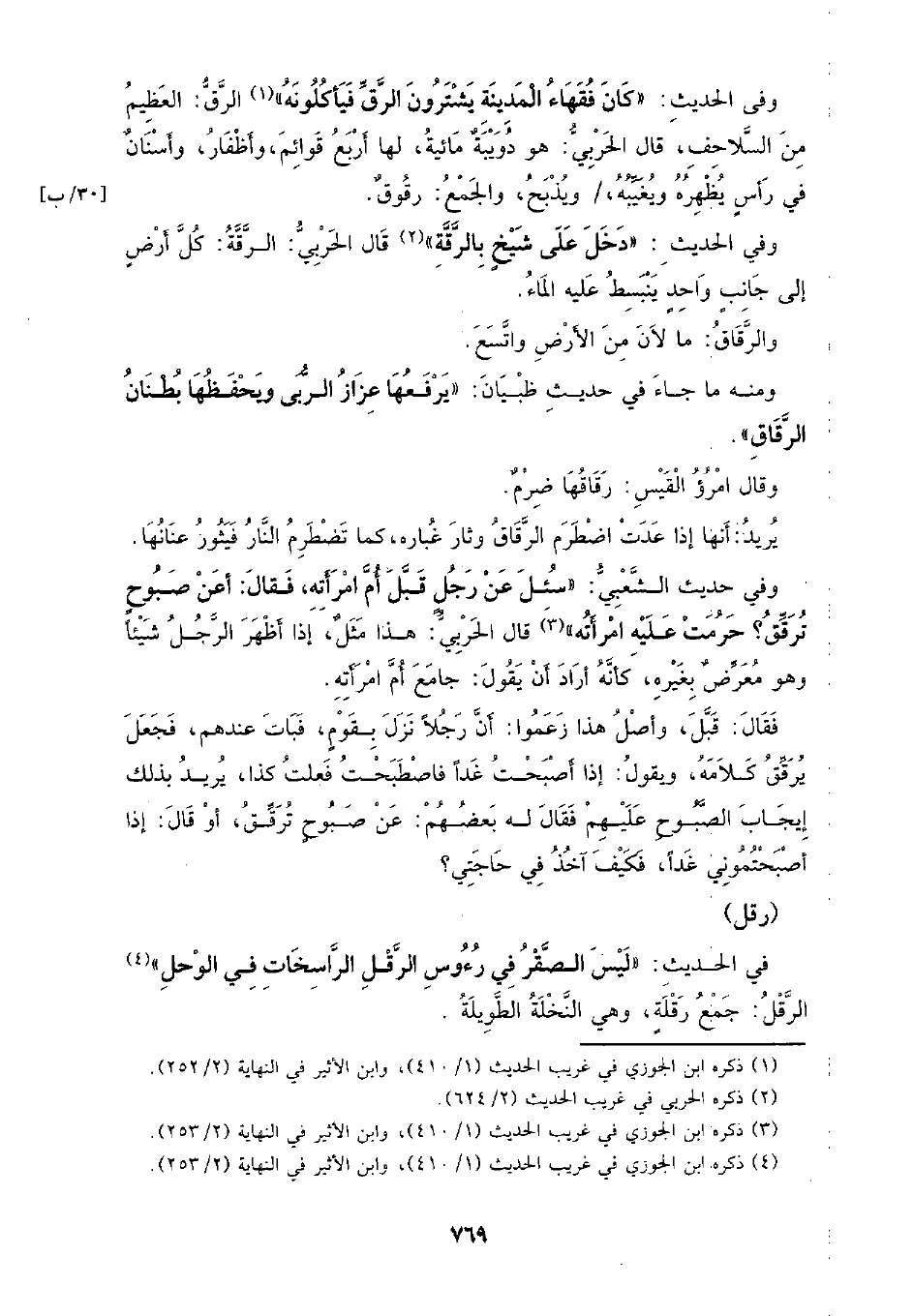 وفي الحديث: (كان فقهاء المدينة يشترون الرق فيأكلونه) الرق: العظيم من السلاحف، قال الحربي: هو دويبة مائية، لها أربع قوائم، وأظفار، وأسنان في رأس يظهره ويغيبه، ويذبح، والجمع: رقوق.