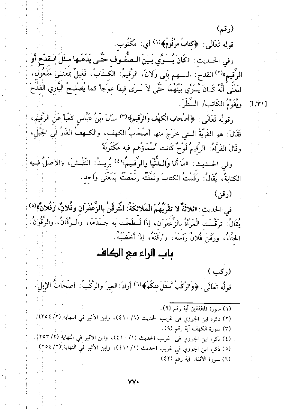 وفي الحديث: (كان يسوي بين الصفوف حتى يدعها مثل القدح أو الرقيم) القدح: السهم بلى ولان، الرقيم: الكتاب، فعيل بمعنى مفعول، المعنى أنه كان يسوي بينهما حتى لا يرى فيها عوجا كما يصلح الباري القدح ويقوم الكاتب السطر.