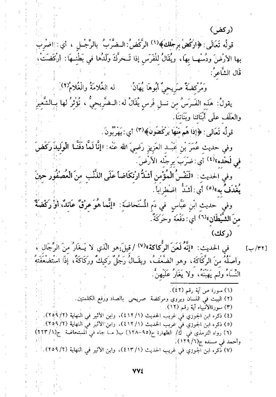 وفي حديث عمر بن عبد العزيز رضي الله عنه: (إنا لما دفنا الوليد ركض في لحده) أي: ضرب برجله الأرض.