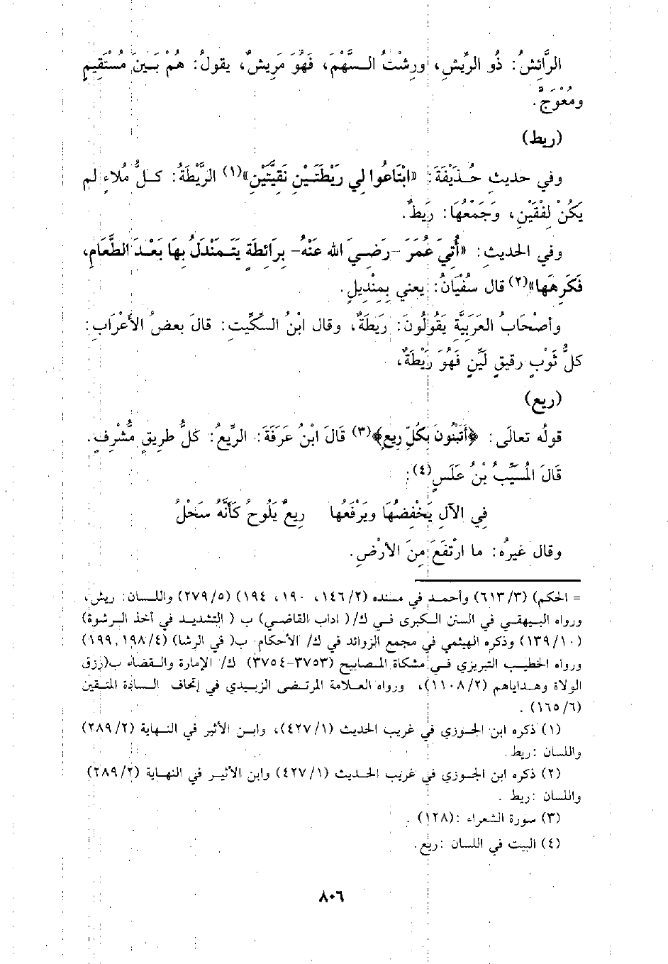 وفي حديث حذيفة: (ابتاعوا لي ريطتين نقيتين) الريطة: كل ملاء لم يكن لفقين، وجمعها: ريط.