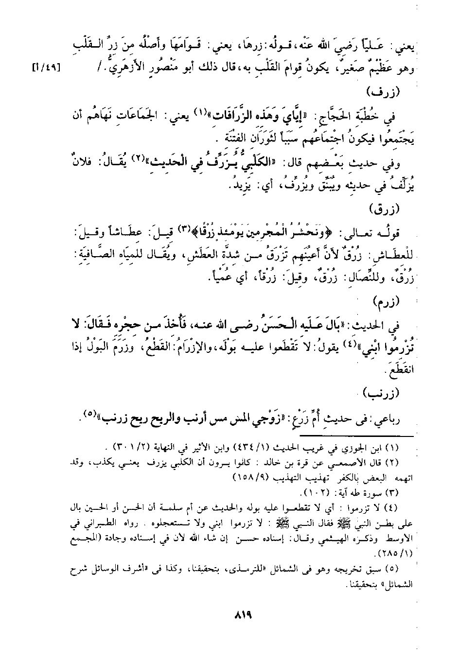وفي حديث بعضهم قال: (الكلبي يزرف في الحديث) يقال: فلان يزلف في حديثه ويبنق ويزرف، أي: يزيد.