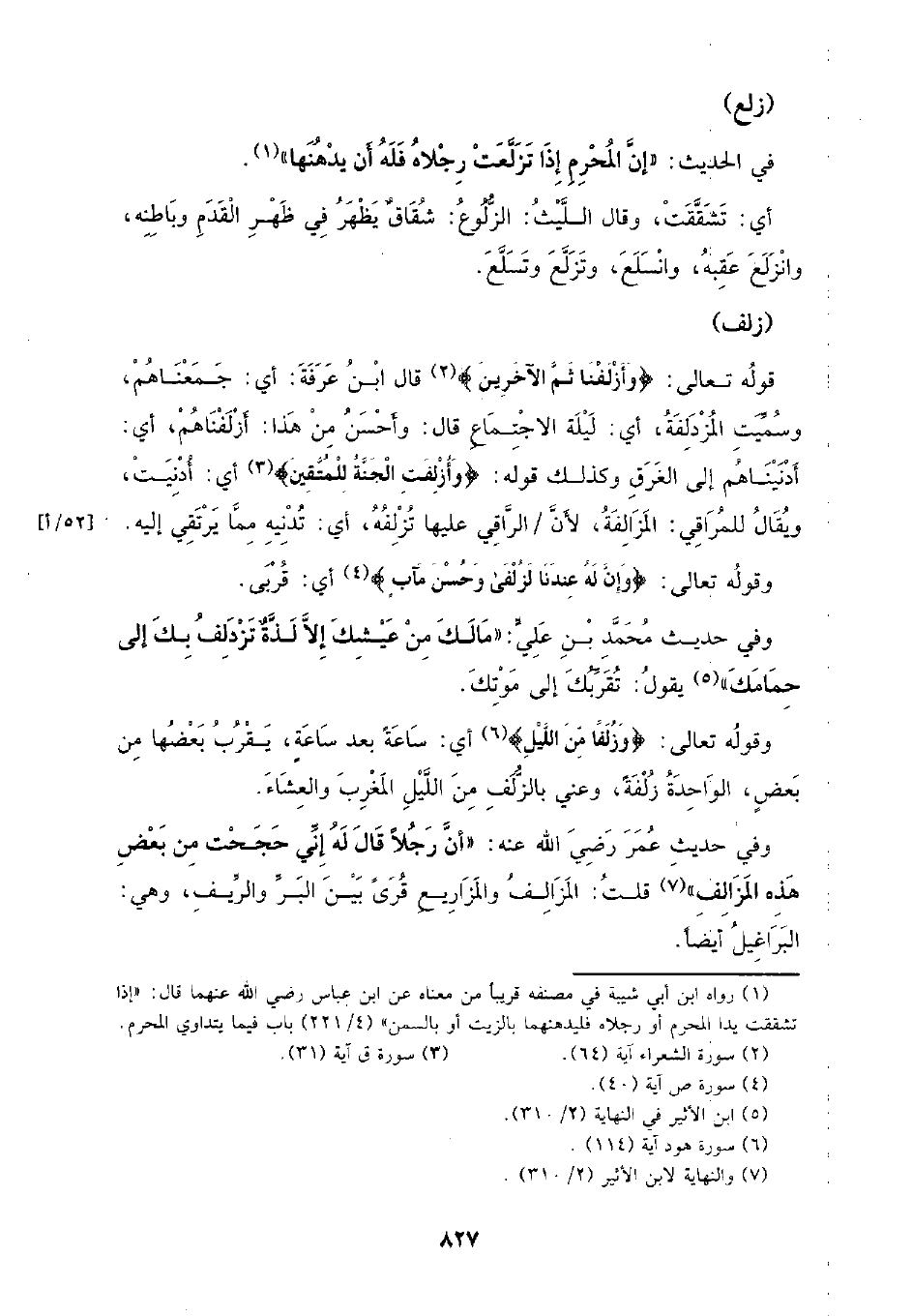 وفي حديث محمد بن علي: (مالك من عيشك إلا لذة تزدلف بك إلى حمامك) يقول: تقربك إلى موتك.
