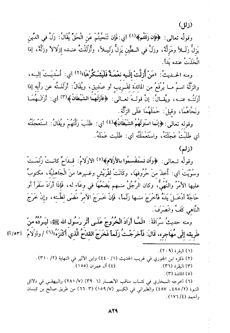 ومنه الحديث: (من أزلت إليه نعمة فليشكرها) أي: أسديت إليه، والزلة اسم ما يرفع من المائدة لقريب أو صديق، ويقال: أزللته عن رأيه إذا أزلته عنه، ويقال: إن قوله تعالى: {فأزلهما الشيطان} أي: أزالهما ونحاهما، وقيل: حلمهما على الزلة.