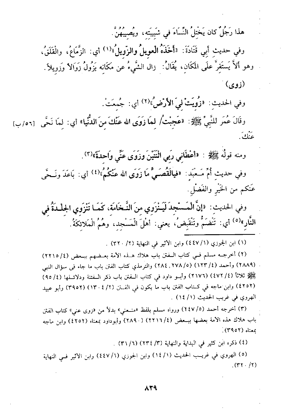 وفي الحديث: (إن المسجد لينزوي من النخامة، كما تنزوي الجلدة في النار) أي: تنضم وتنقبض، يعني: أهل المسجد، وهم الملائكة.