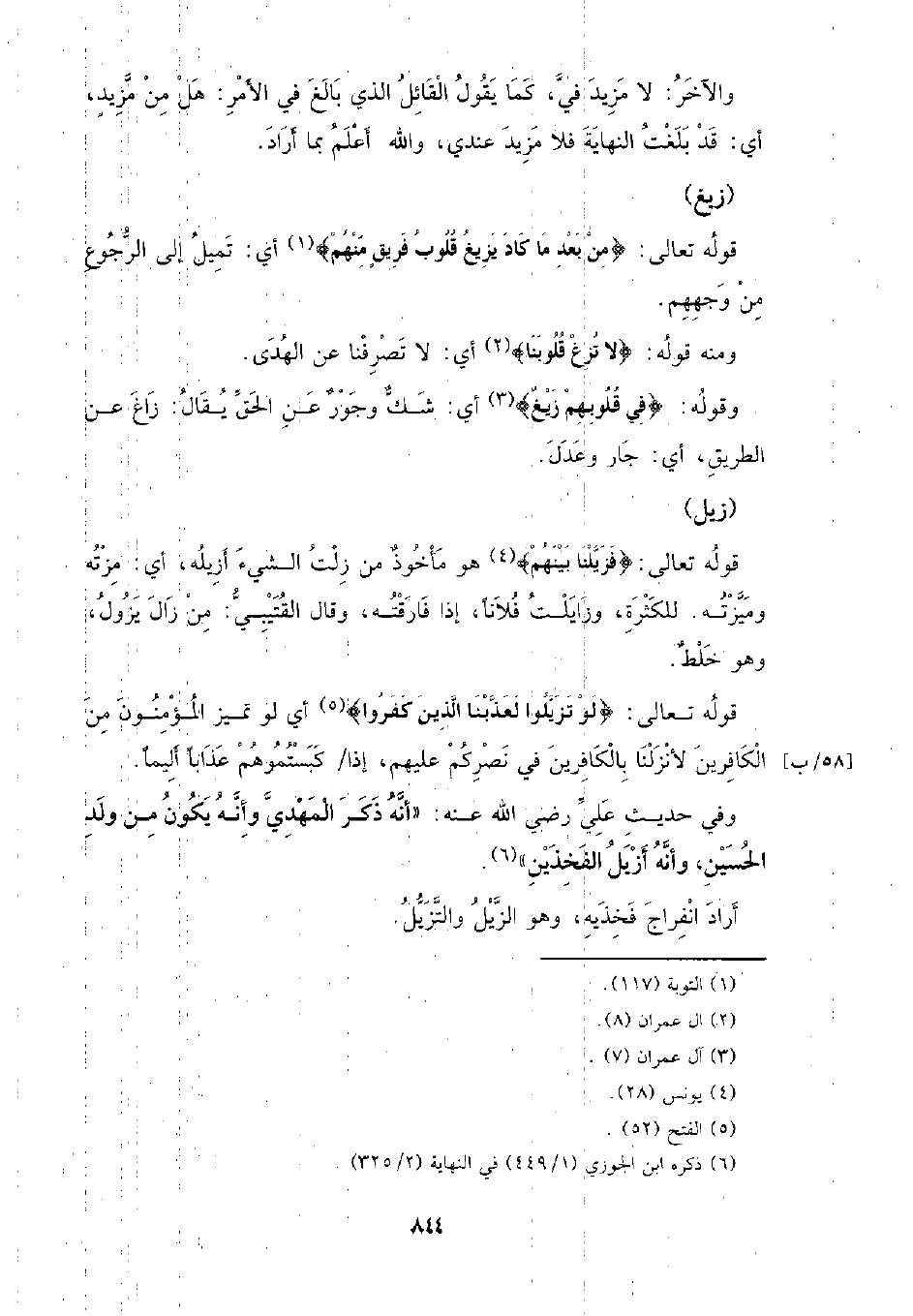 ومنه قوله: {لا تزغ قلوبنا} أي: لا تصرفنا عن الهدى.