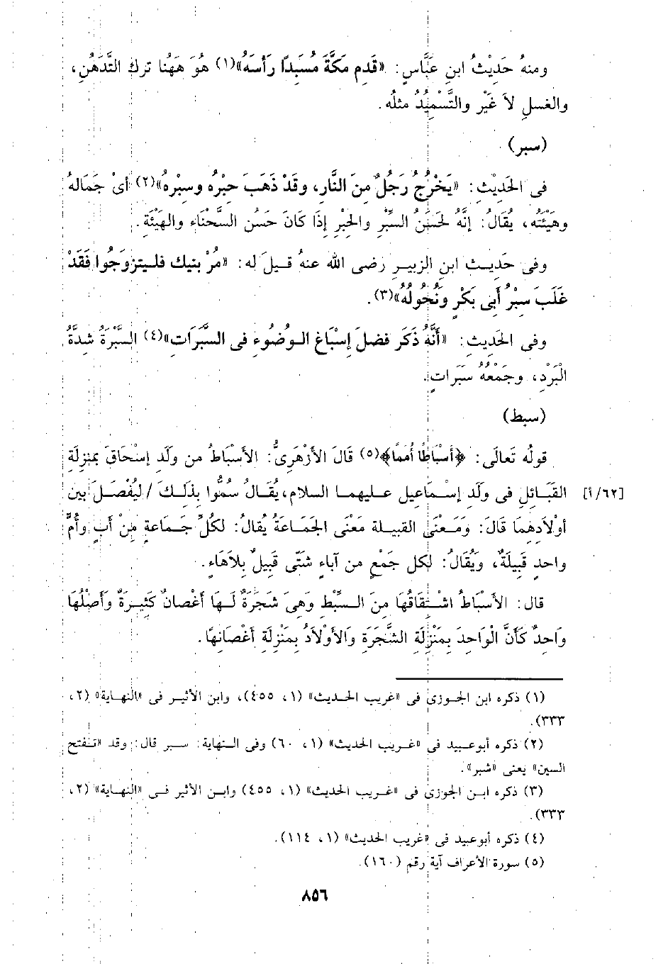 ومنه حديث ابن عباس: (قدم مكة مسبدًا رأسه) هو ههنا ترك التدهن، والغسل لا غير والتسميد مثله.