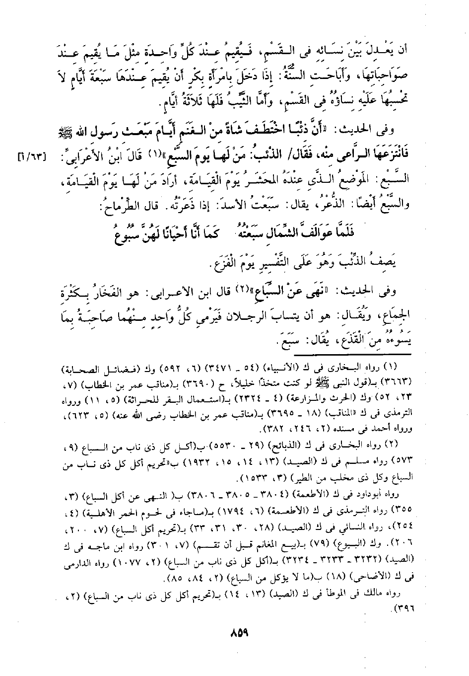 وفي الحديث: (نهى عن السباع) قال ابن الأعرابي: هو الفخار بكثرة الجماع، ويقال: هو أن يتساب الرجلان فيرمي كل واحد منهما صاحبة بما يسوءه من القذع، يقال: سبع.