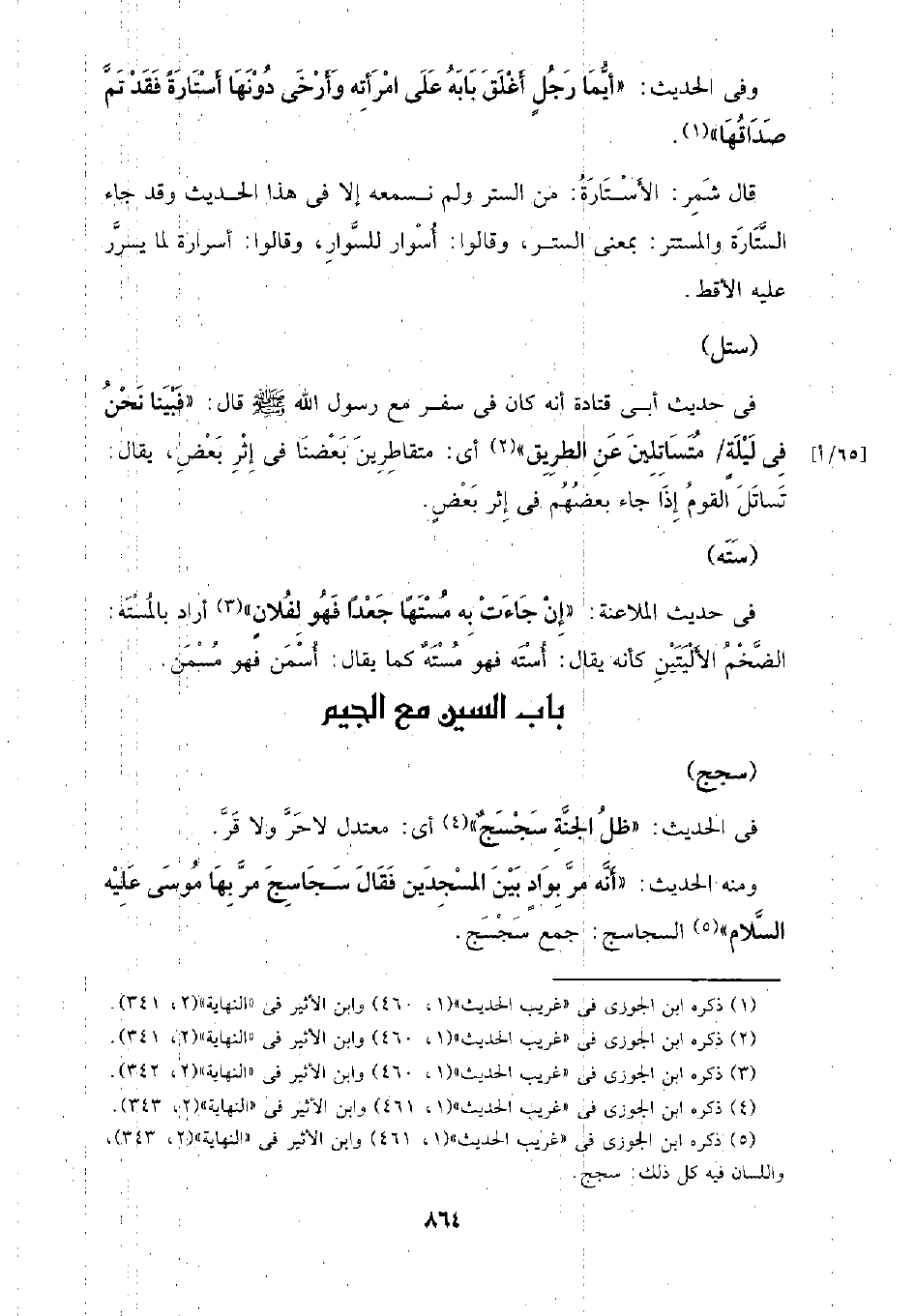 ومنه الحديث: (أنه مر بواد بين المسجدين فقال سجاسج مر بها موسى عليه السلام) السجاسج: جمع سجسج.