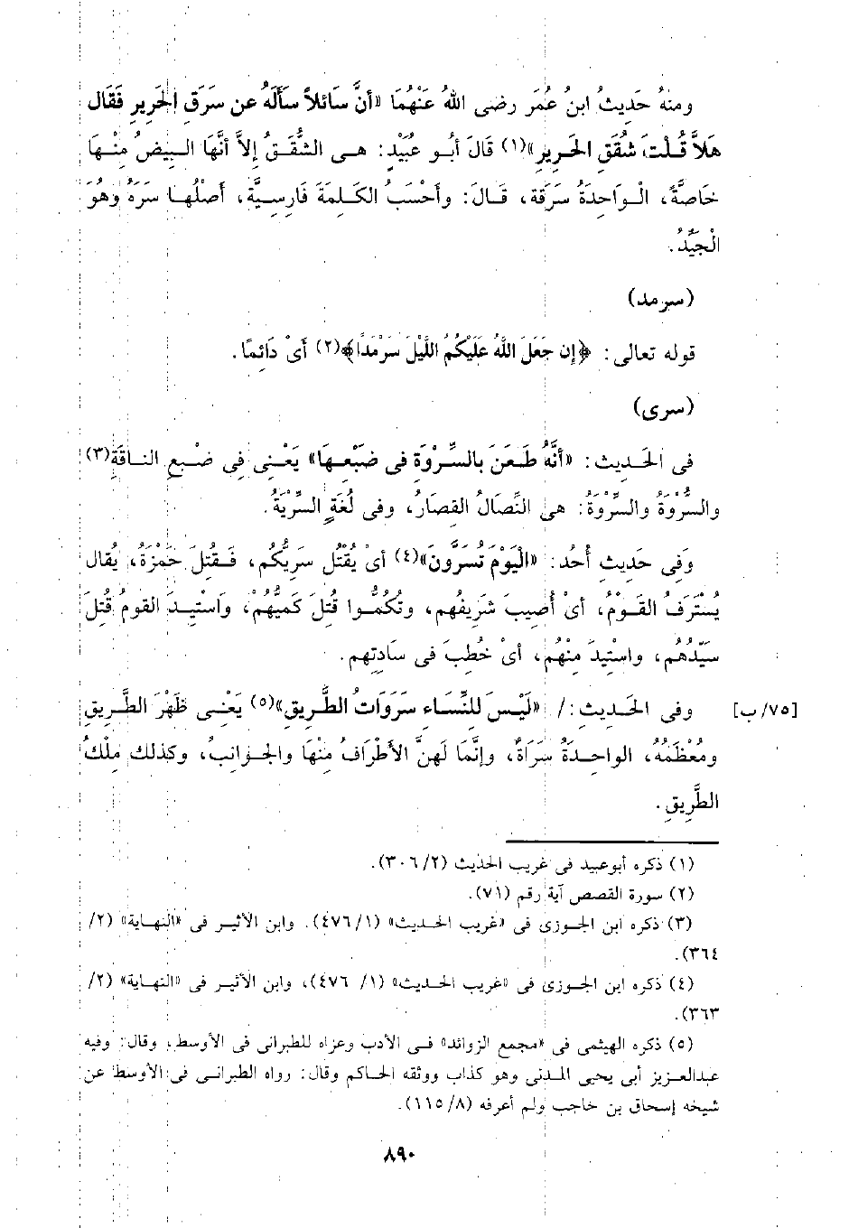 ومنه حديث ابن عمر رضي الله عنهما (أن سائلًا سأله عن سرق الحرير فقال هلا قلت شقق الحرير) قال أبو عبيد: هي الشقق إلا أنها البيض منها خاصة، الواحدة سرقة، قال: وأحسب الكلمة فارسية، أصلها سره وهو الجيد.