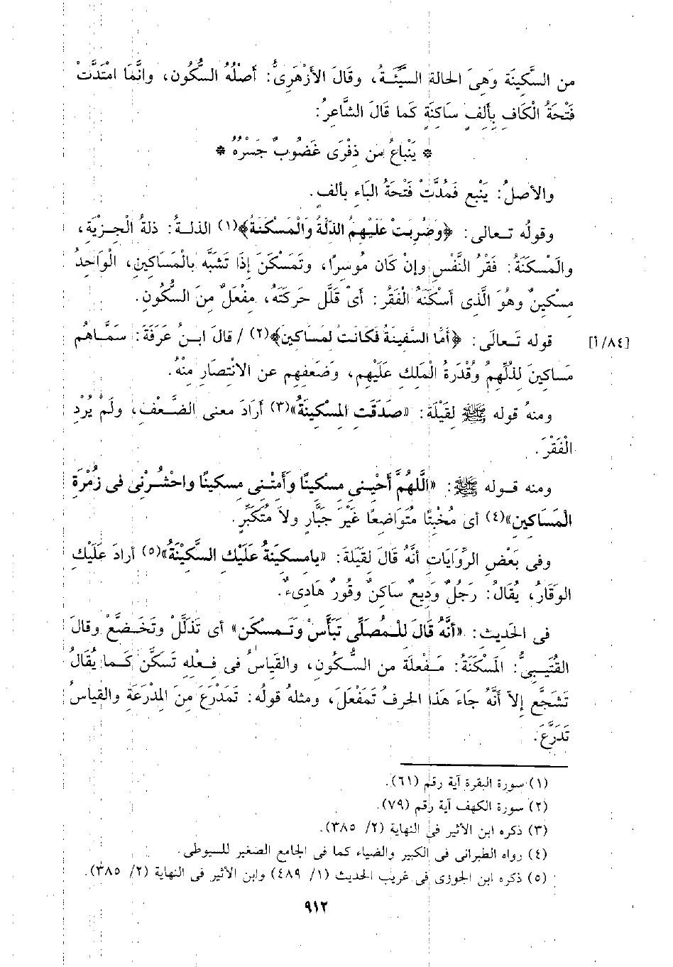 ومنه قوله - صلى الله عليه وسلم -: (اللهم أحيني مسكينًا وأمتني مسكينًا واحشرني في زمرة المساكين) أي مخبتًا متواضعًا غير جبار ولا متكبر.