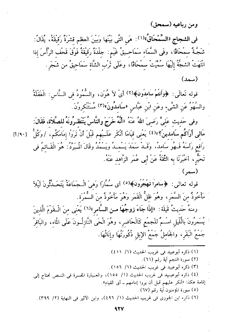 وفي حديث علي رضي الله عنه (أنه خرج والنس ينتظرونه للصلاة، فقال: مالي أراكم سامدين؟ ) يعني قيامًا أنكر عليهم قبل أن تروا إمامكم، / وكل رافع رأسه فهو سامد، وقد سمد يسمد ويسمد وقال المبرد: هو القائم في تحير، أخبرنا به الثقة عن أبي عمر الزاهد عنه.
