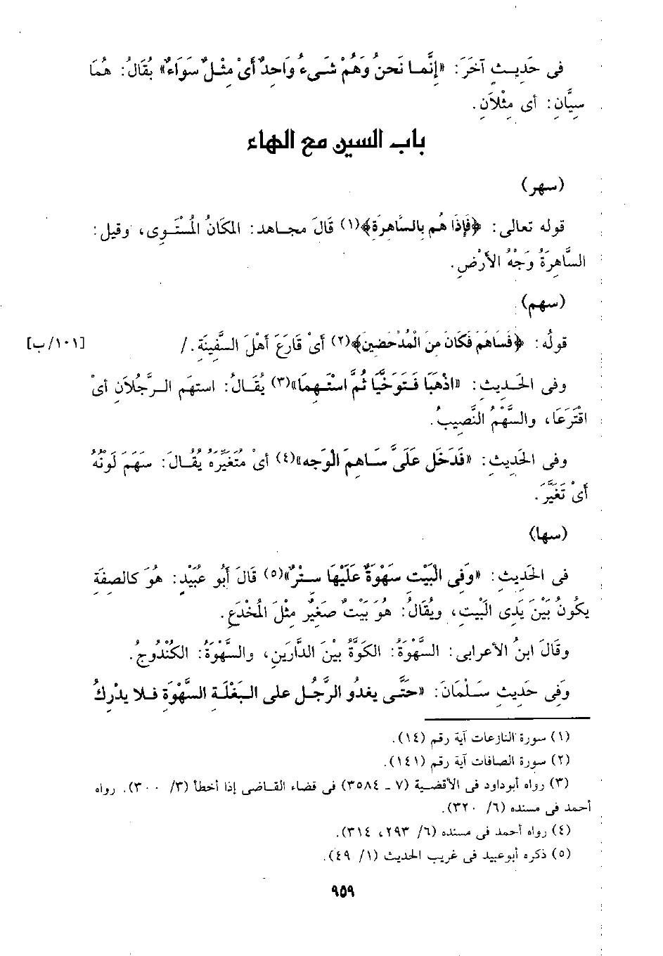 وفي الحديث: (فدخل علي ساهم الوجه) أي متغيره يقال: سهم لونه أي تغير.