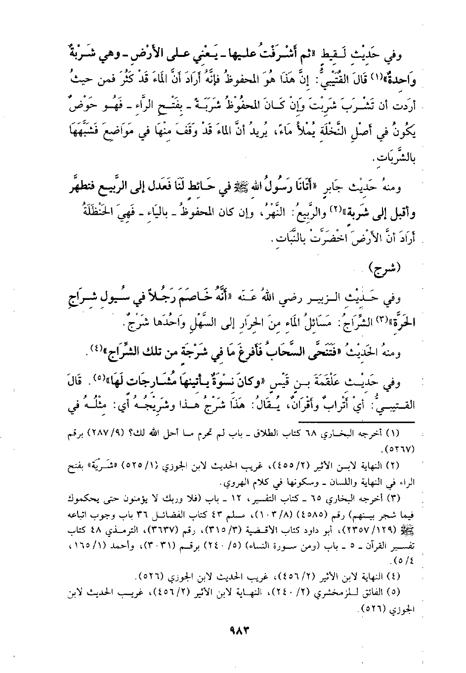 وفي حديث الزبير رضي الله عنه (أنه خاصم رجلًا في سيول شراج الحرة) الشراج: مسائل الماء من الحرار إلى السهل واحدها شرج.