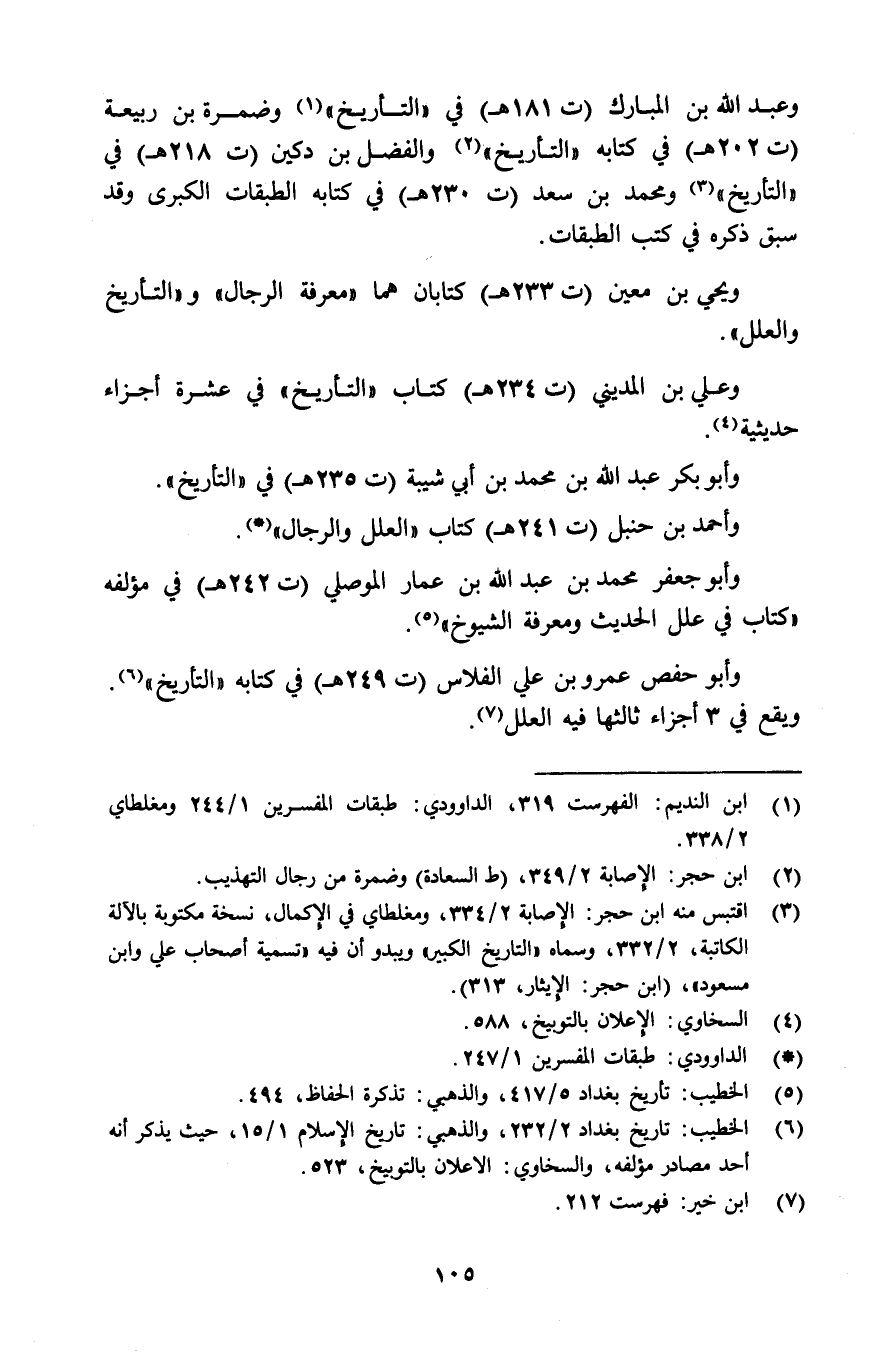 وعلي بن المديني "ت234هـ" كتاب "التأريخ" في عشرة أجزاء حديثية4.
