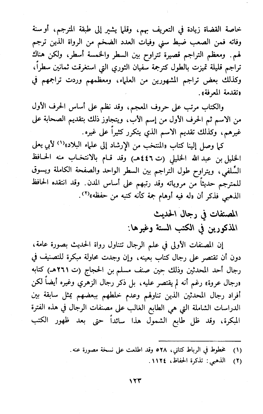 المصنفات في رجال الحديث المذكورين في الكتب الستة وغيرها: