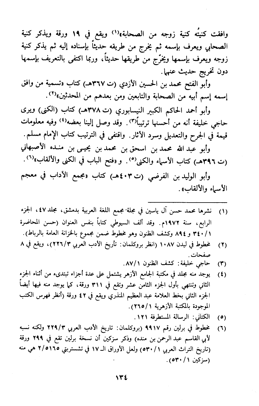 وأبو عبد الله محمد بن إسحاق بن محمد بن يحيى بن منده الأصبهاني "ت396هـ" كتاب الأسماء والكنى5. و"فتح الباب في الكنى والألقاب"6.