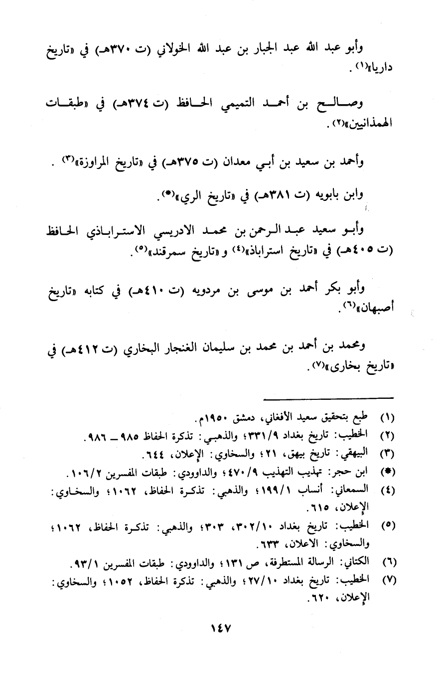 5 السمعاني: أنساب 1/ 199؛ والذهبي: تذكرة الحفاظ، 1062؛ والسخاوي: الاعلان، 615.