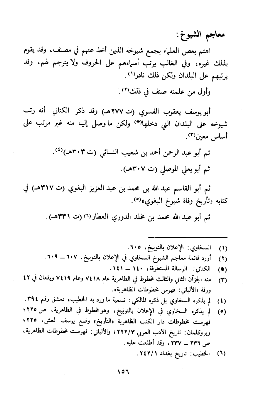 أبو يوسف يعقوب الفسوي "ت277هـ" وقد ذكر الكتاني أنه رتب شيوخه على البلدان التي دخلها3 ولكن ما وصل إلينا منه غير مرتب على أساس معين4.