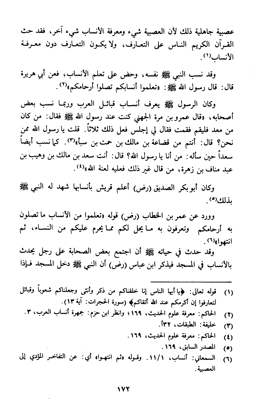 عصبية جاهلية ذلك لأن العصبية شيء ومعرفة الأنساب شيء آخر، فقد حث القرآن الكريم الناس على التعارف، ولا يكون التعارف دون معرفة الأنساب1.