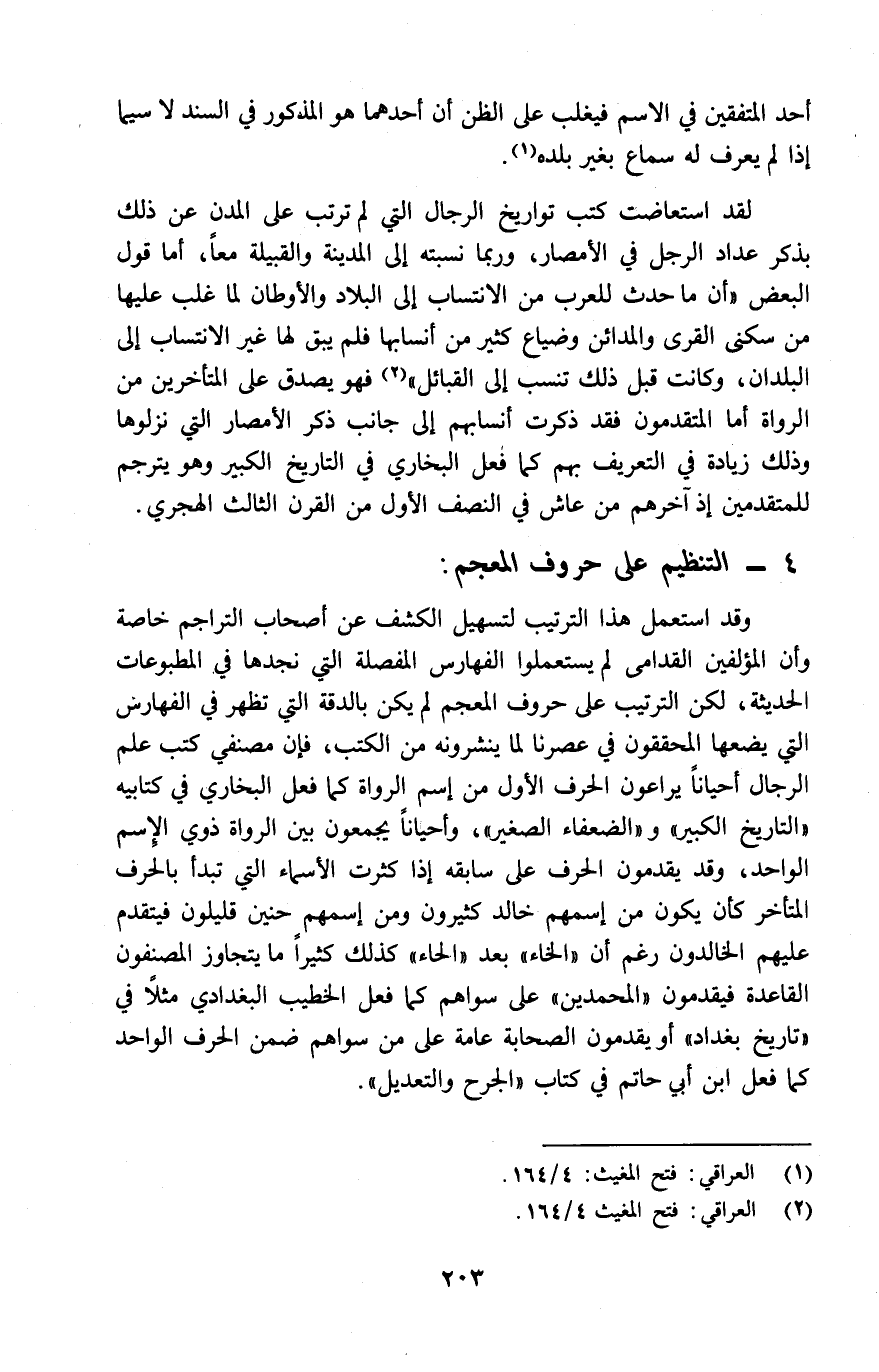 وقد استعمل هذا الترتيب لتسهيل الكشف عن أصحاب التراجم خاصة وأن المؤلفين القدامى لم يستعملوا الفهارس المفصلة التي نجدها في المطبوعات الحديثة, لكن الترتيب على حروف المعجم لم يكن بالدقة التي تظهر في الفهارس التي يضعها المحققون في عصرنا لما ينشرونه من الكتب، فإن مصنفي كتب علم الرجال أحيانا يراعون الحرف الأول من إسم الرواة كما فعل البخاري في كتابيه "التاريخ الكبير" و"الضعفاء الصغير"، وأحيانا يجمعون بين الرواة ذوي الإسم الواحد، وقد يقدمون الحرف على سابقه إذا كثرت الأسماء التي تبدأ بالحرف المتأخر كأن يكون من إسمهم خالد كثيرون ومن إسمم حنين قليلون فيتقدم عليهم الخالدون رغم أن "الخاء" بعد "الحاء" كذلك كثيرا ما يتجاوز المصنفون القاعدة فيقدمون "المحمدين" على سواهم كما فعل الخطيب البغدادي مثلا في "تاريخ بغداد" أو يقدمون الصحابة عامة على من سواهم ضمن الحرف الواحد كما فعل ابن ابي حاتم في كتاب "الجرح والتعديل".