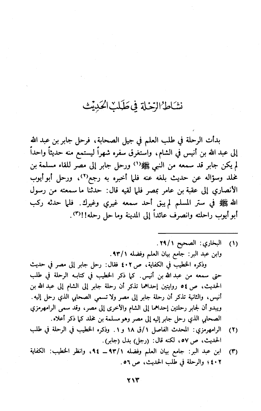 3 ابن عبد البر: جامع بيان العلم وفضله 1/ 93-94، وانظر الخطيب: الكفاية 402؛ والرحلة في طلب الحديث، ص56.