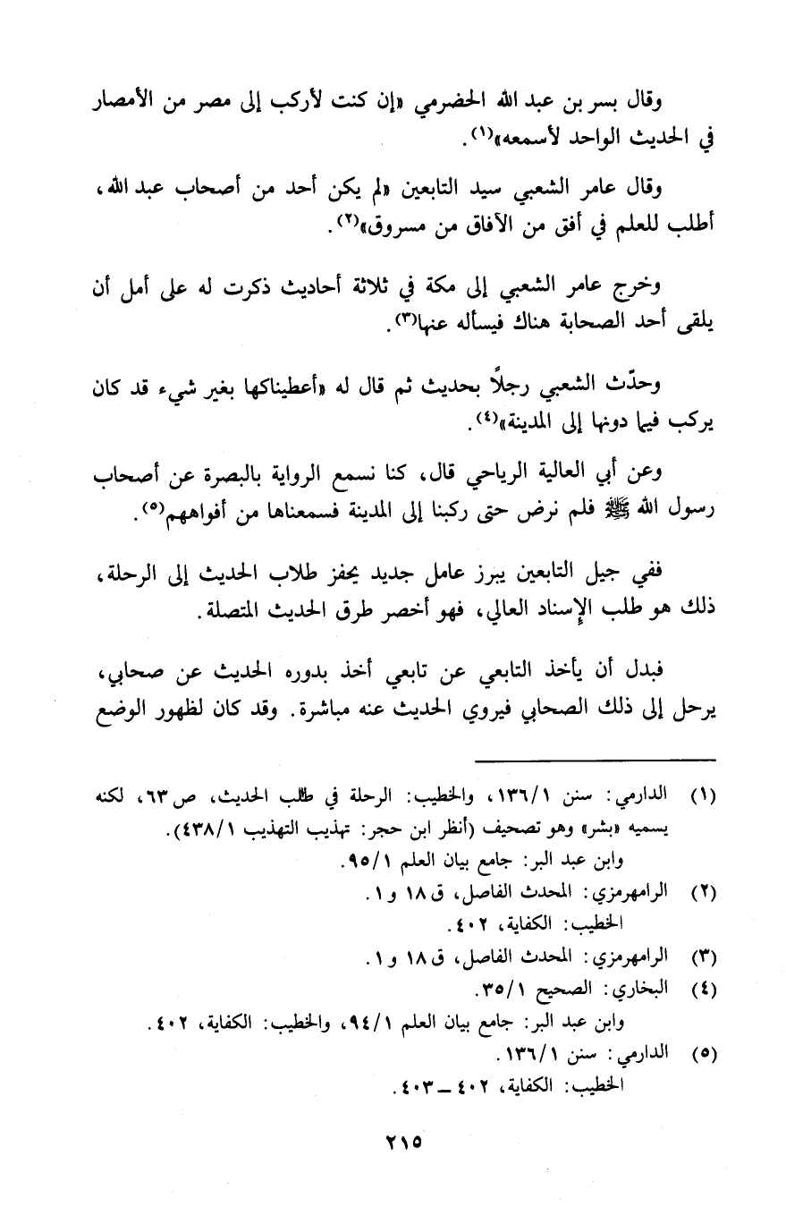 وقال بسر بن عبد الله الحضرمي "إن كنت لأركب إلى مصر من الأمصار في الحديث الواحد لأسمعه"1.