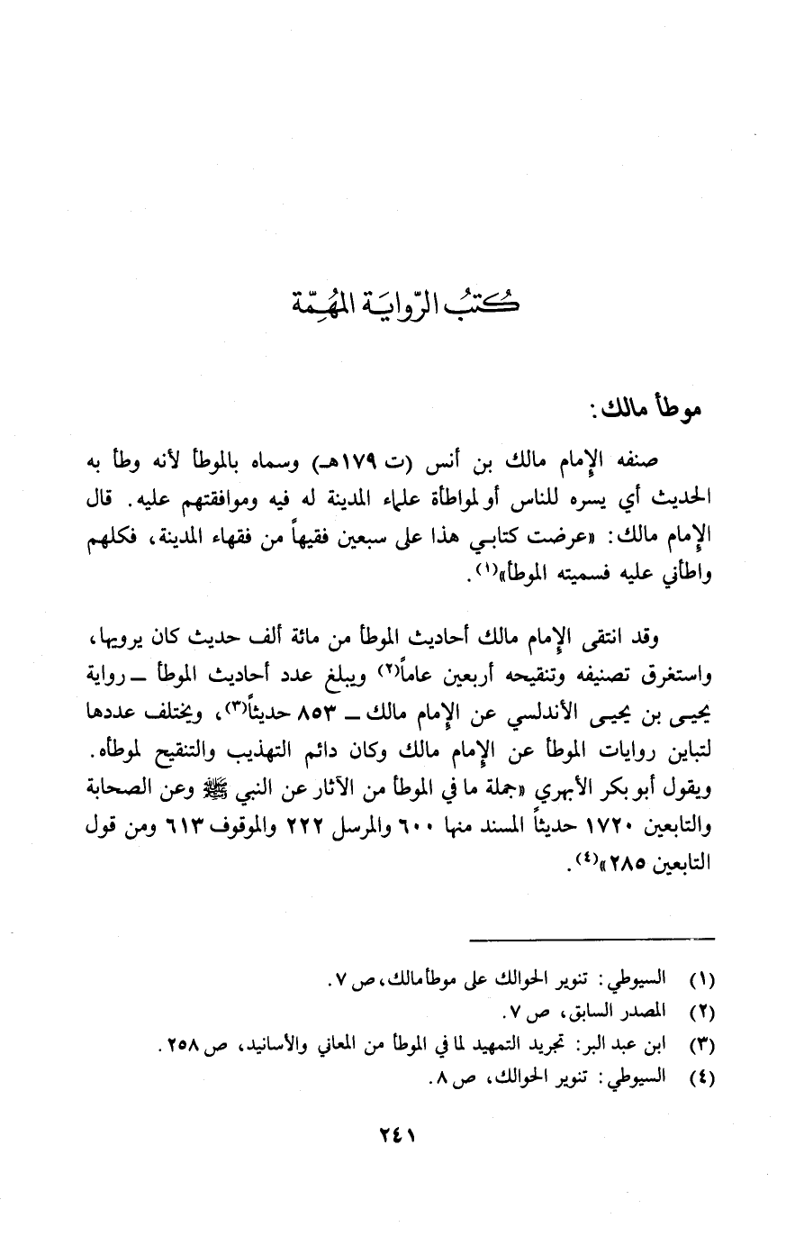 4 السيوطي: تنوير الحوالك، ص8.