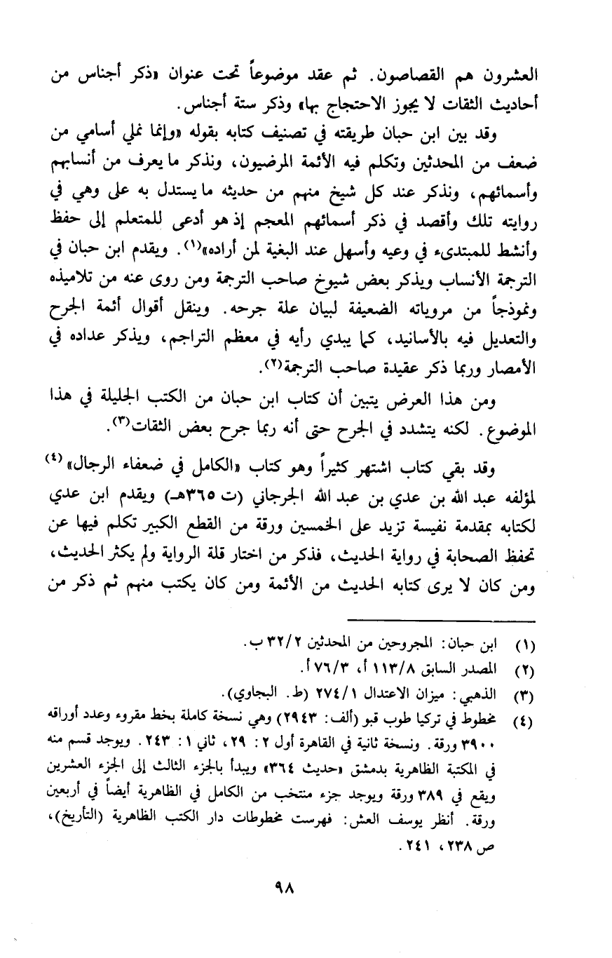 ومن هذا العرض يتبين أن كتاب ابن حبان من الكتب الجليلة في هذا الموضوع. لكنه يتشدد في الجرح حتى أنه ربما جرح بعض الثقات3.