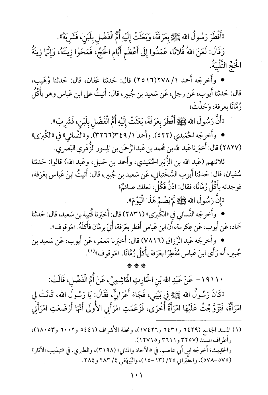 ١٩١١٠ - عن عبد الله بن الحارث الهاشمي، عن أم الفضل، قالت: