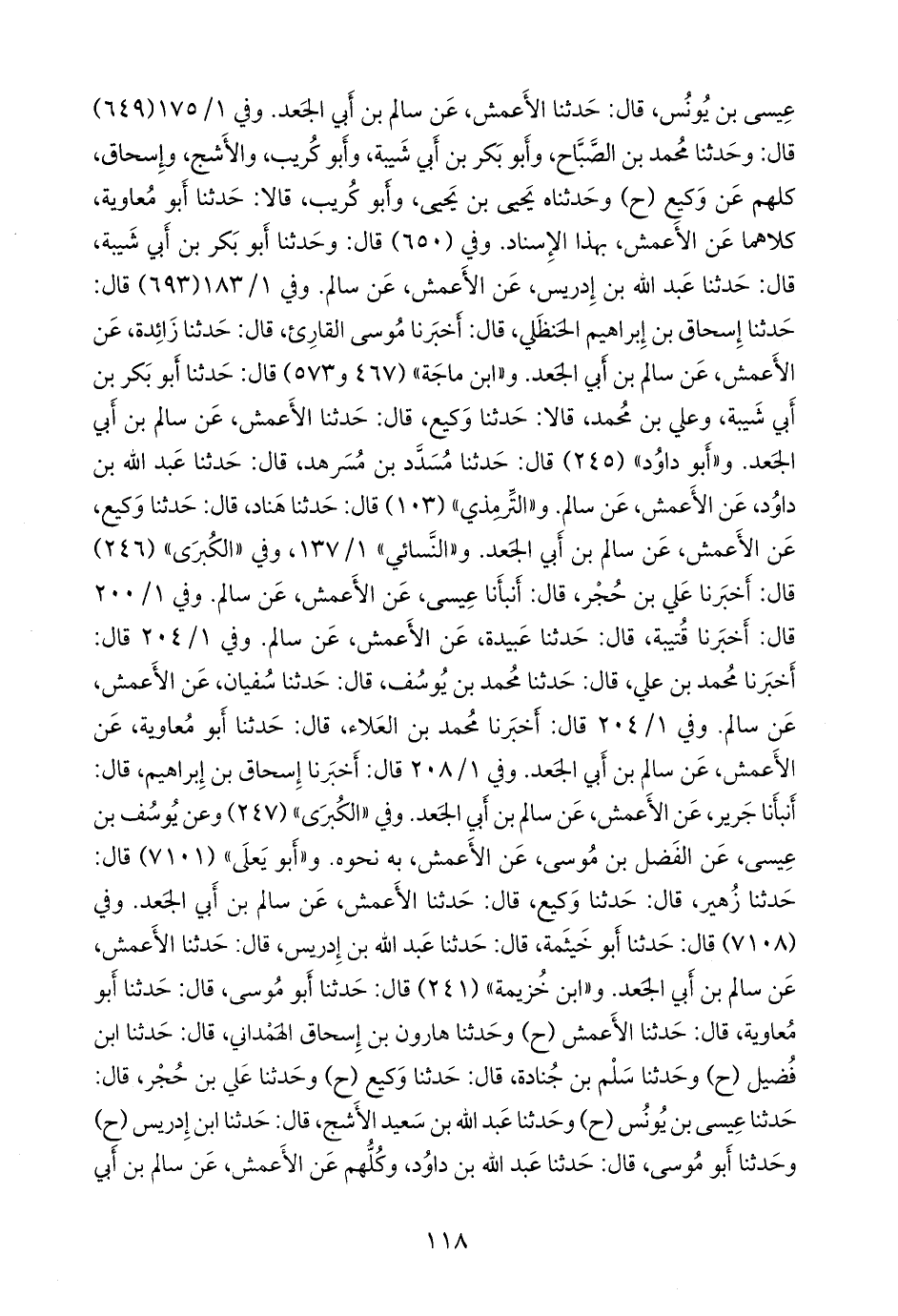 جميعهم (سفيان بن سعيد الثوري، وسفيان بن عُيينة، ووكيع بن الجراح، وعبد الله بن إِدريس، وأَبو معاوية محمد بن خازم، وأَبو عَوانة الوضَّاح بن عبد الله، وزائدة بن قُدَامة، وعبد الواحد بن زياد، وحفص بن غياث، والفضل بن موسى، وأَبو حمزة محمد بن ميمون، وعيسى بن يونس، وعبد الله بن داود، وعَبيدة بن حُميد، وجَرير بن عبد الحميد) عن سليمان بن مِهران الأَعمش، عن سالم بن أَبي