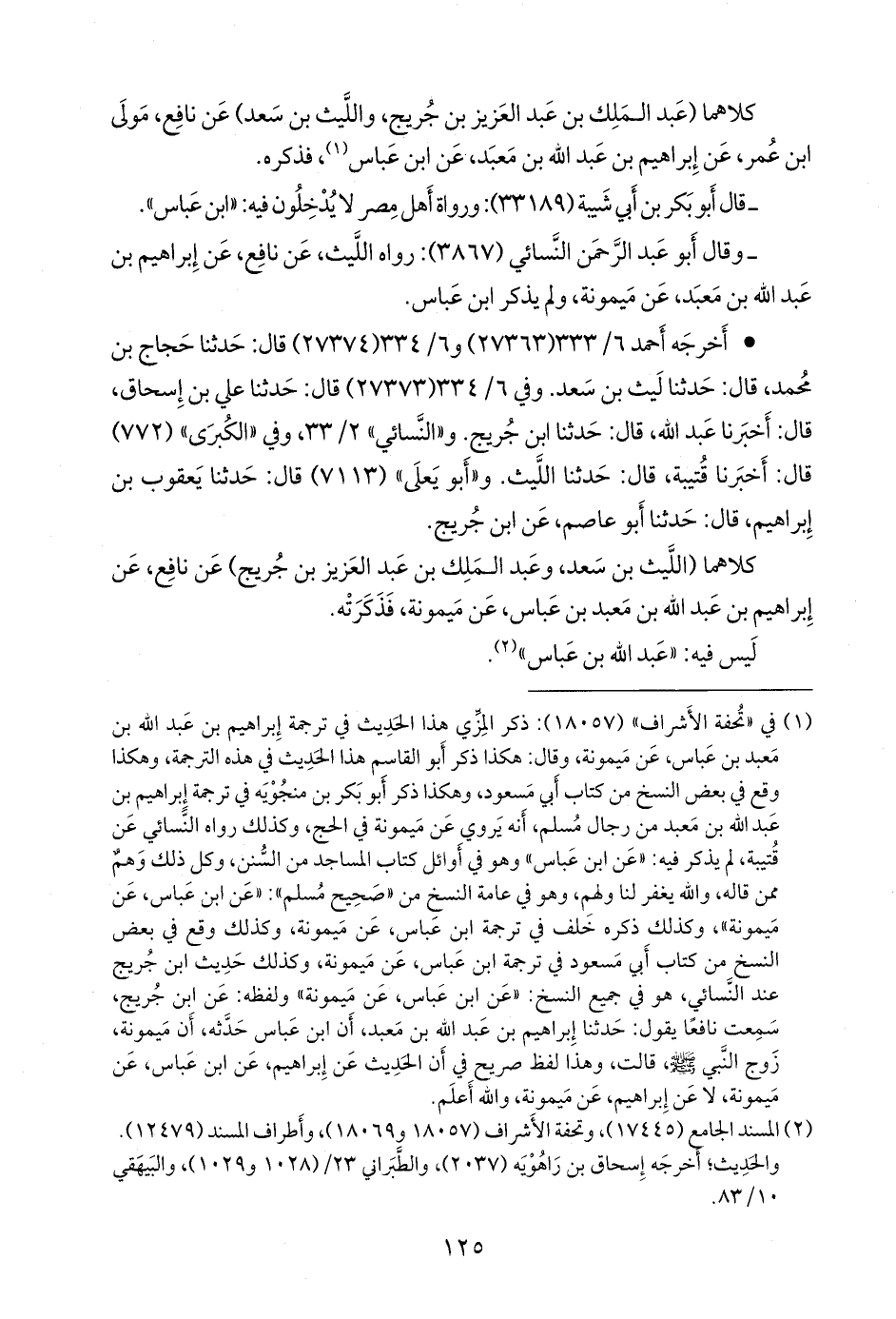 كلاهما (عبد الملك بن عبد العزيز بن جُريج، والليث بن سعد) عن نافع مولى ابن عمر، عن إبراهيم بن عبد الله بن مَعبد، عن ابن عباس (¬١)، فذكره.