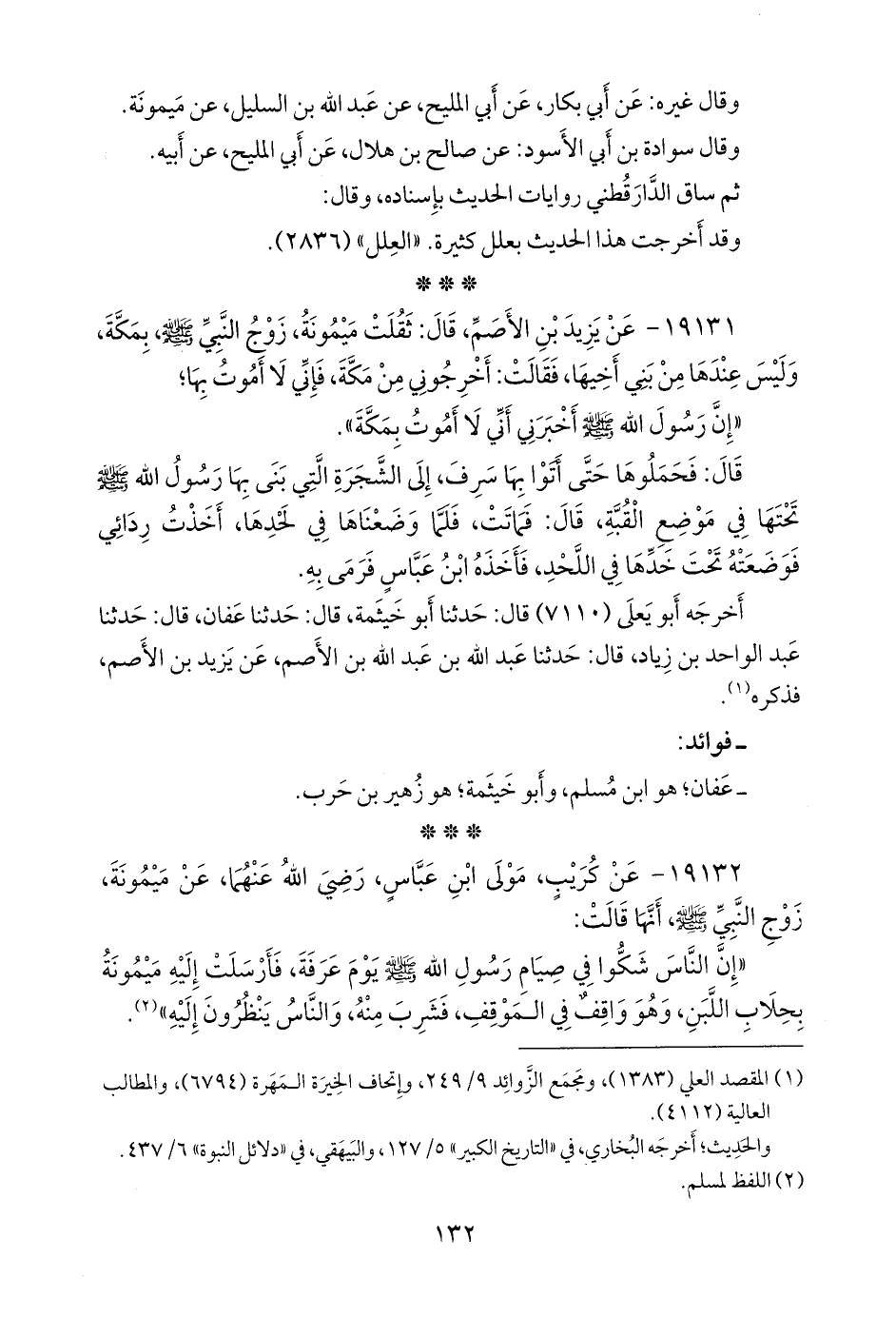١٩١٣٢ - عن كُريب مولى ابن عباس، رضي الله عنهما، عن ميمونة، زوج النبي صَلى الله عَليه وسَلم أنها قالت: