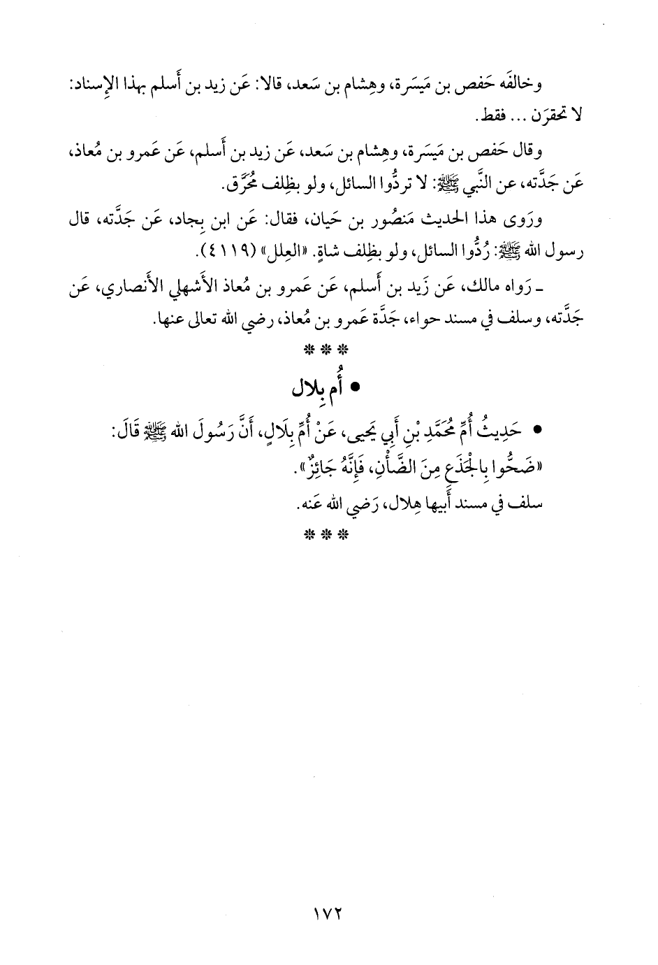• حديث أم محمد بن أبي يحيى، عن أم بلال، أن رسول الله صَلى الله عَليه وسَلم قال: