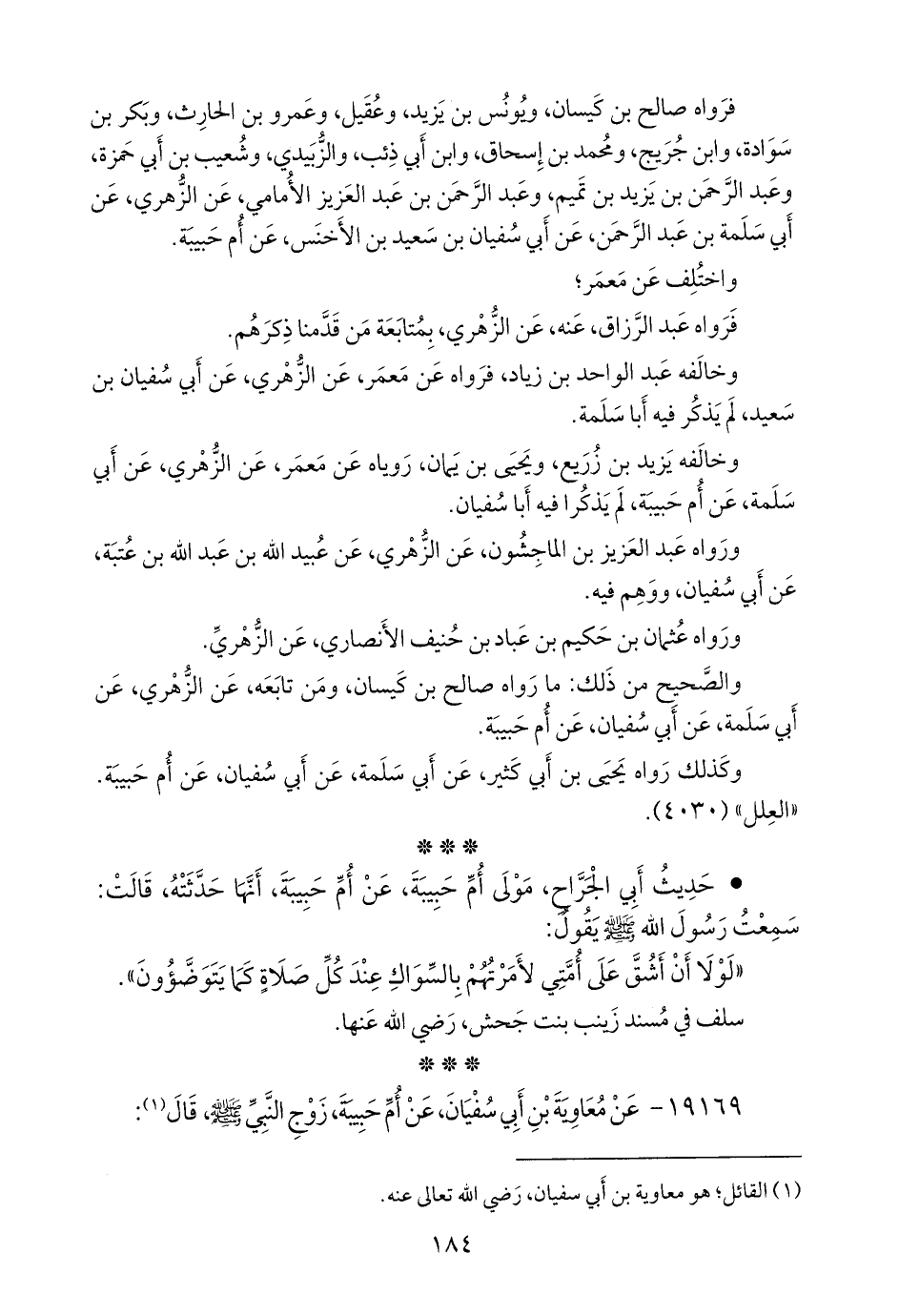 ١٩١٦٩ - عن معاوية بن أبي سفيان، عن أم حبيبة، زوج النبي صَلى الله عَليه وسَلم قال (¬١):