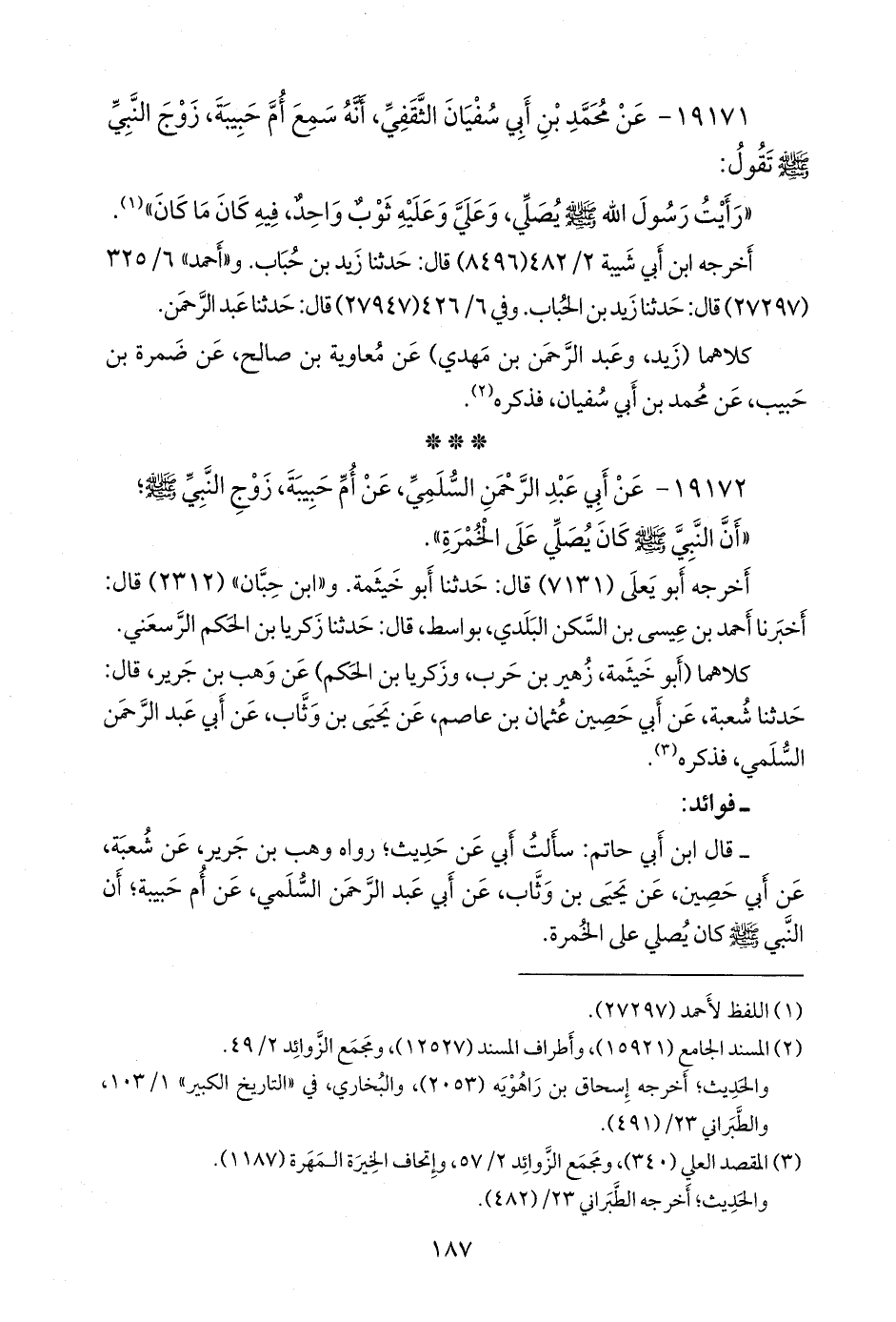 ١٩١٧٢ - عن أبي عبد الرَّحمَن السُّلَمي، عن أم حبيبة، زوج النبي صَلى الله عَليه وسَلم؛