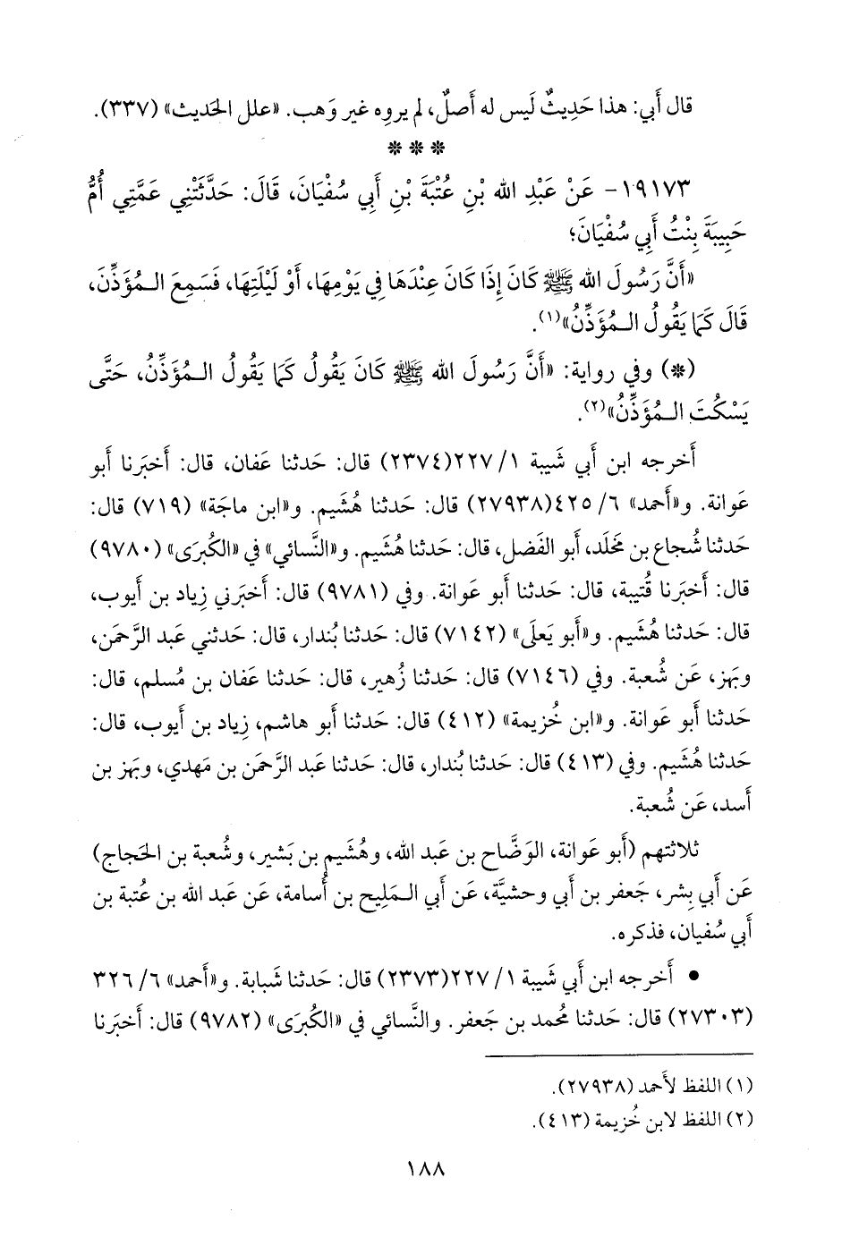 (¬٢) المسند الجامع (١٥٩٢٢)، وتحفة الأشراف (١٥٨٥٣ و ١٥٨٧٢)، وأطراف المسند (١٢٥٢٢).