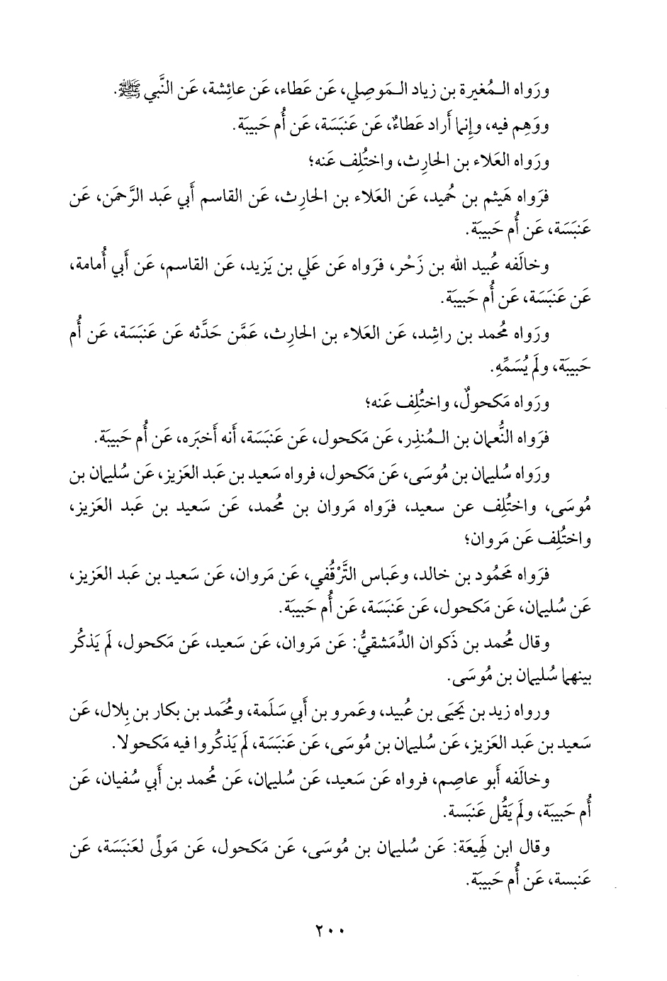 فرواه سعيد بن عبد العزيز، عن سليمان بن موسى, واختلف عن سعيد؛ فرواه مروان بن محمد، عن سعيد بن عبد العزيز، واختلف عن مروان؛ فرواه محمود بن خالد، وعباس الترقفي، عن مروان، عن سعيد بن عبد العزيز، عن سليمان، عن مكحول، عن عنبسة، عن أم حبيبة.