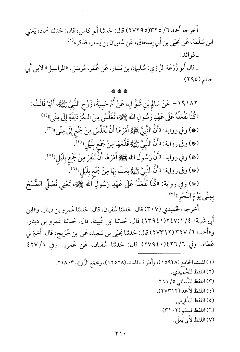 ١٩١٨٢ - عن سالم بن شوال، عن أم حبيبة، زوج النبي صَلى الله عَليه وسَلم أنها قالت: