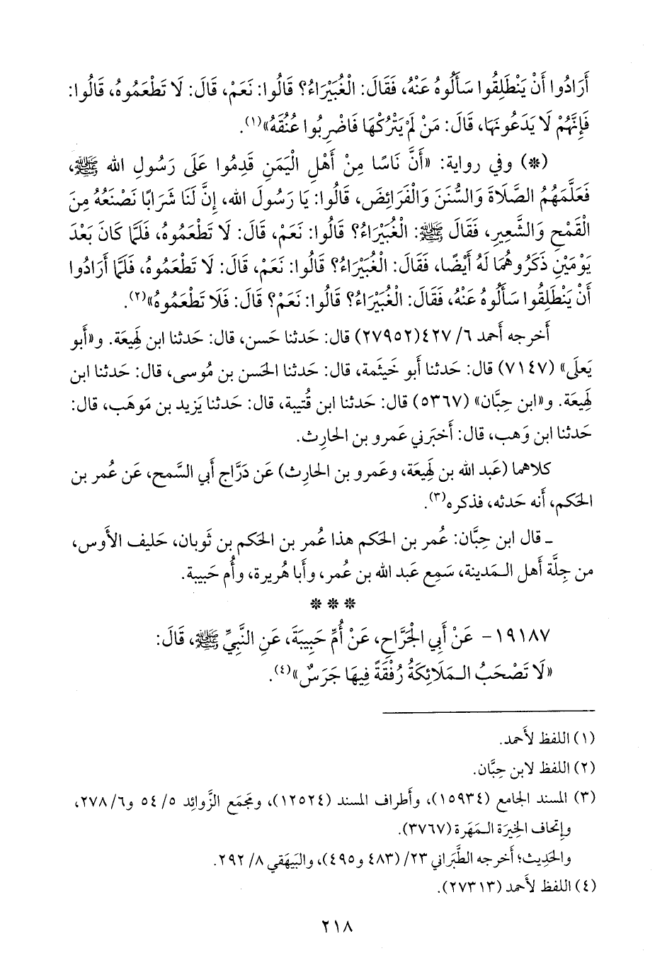 (¬١) المسند الجامع (١٥٩٣٤)، وأطراف المسند (١٢٥٢٤)، ومَجمَع الزوائد ٥/ ٥٤ و ٦/ ٢٧٨، وإتحاف الخِيرَة المَهَرة (٣٧٦٧).
